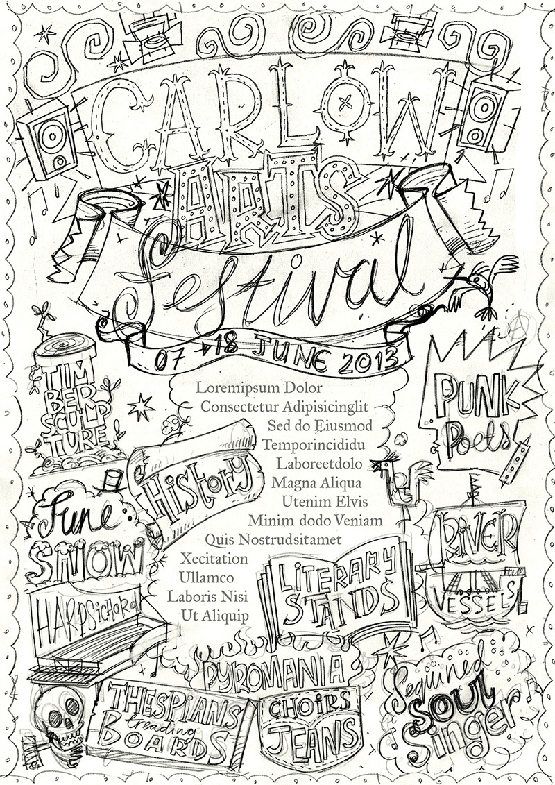 Festival programme cover and poster for the annual arts festival in the Irish town of Carlow.