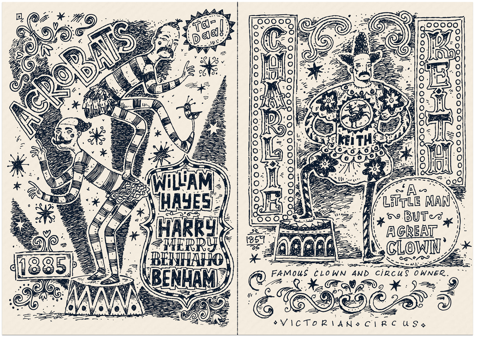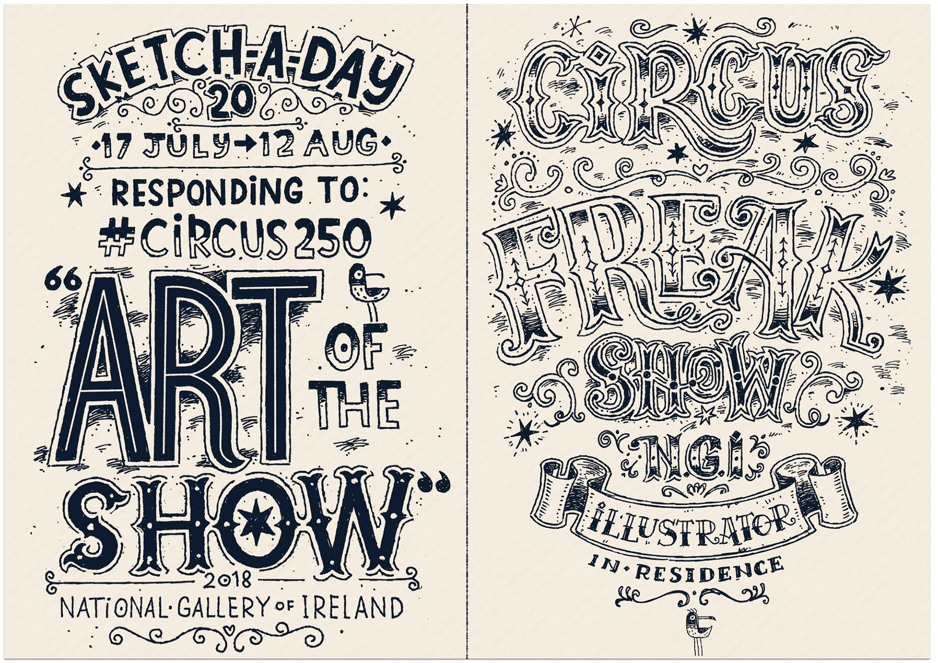 Rather than doing a finished colour illustration (which was my first thought), I decided to produce a sketch-a-day focusing mainly on vintage circus, sideshow and freak show.