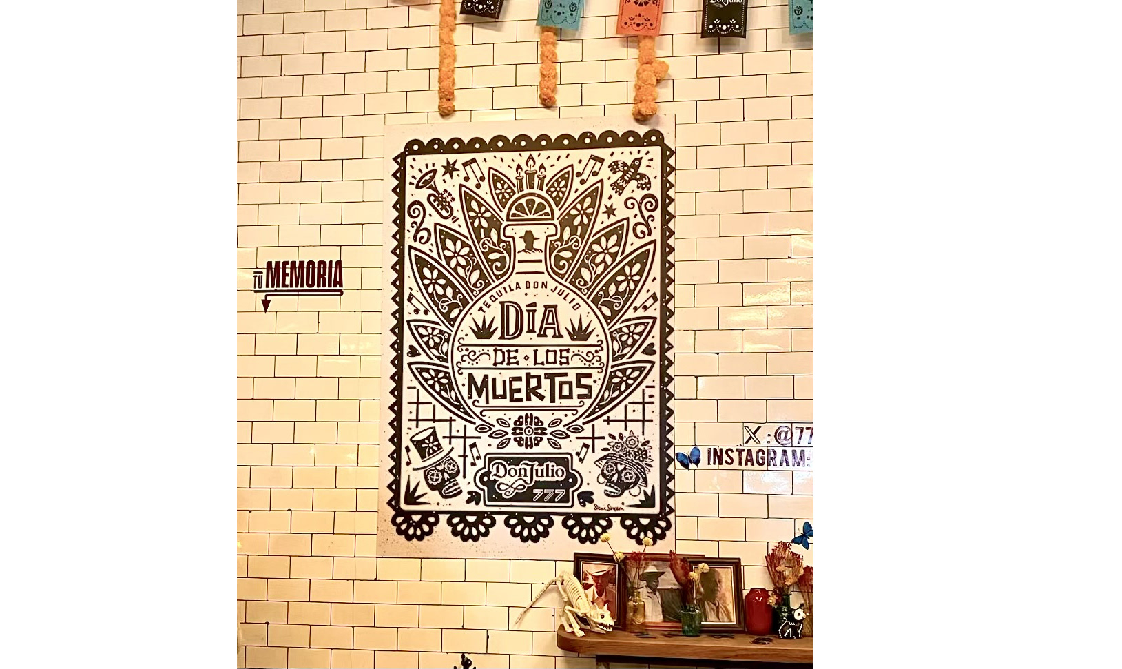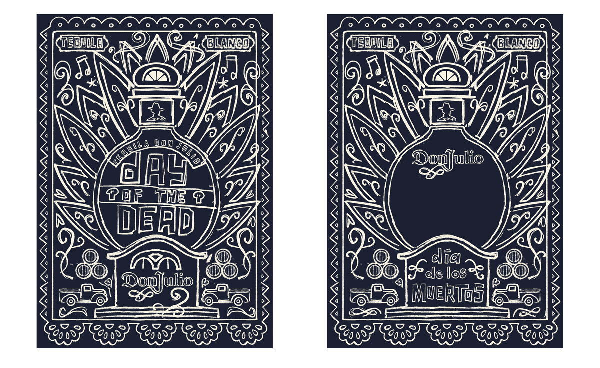 If you've seen anything of my portfolio you will know I enjoy working on projects related to Día de los Muertos, even better, I absolutely love working on Día de los Muertos with Mexican brands. The brief was both simple and complex. To create a promotional poster in the style of papel picado that encompassed the Don Julio brand for a Day of the Dead event. The tricky bit was to create something that could easily be broken apart and used as assets for various campaign elements, a text holder for the menus, window clings, mini graphics, single colour screen print etc. All said, I really enjoyed the challenge of this project and was delighted with ultimate outcome - many thanks to Bren Byrne at Catapult for the Creative Direction.