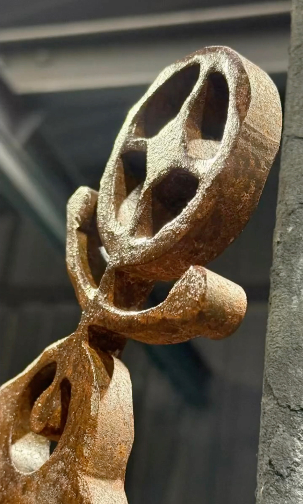 Inspired by my artwork Growth, this moongate was designed as a circular garden threshold made from layered, cut steel forms. The design draws on plant-like structures, seed pods, imaginary birds and branching stems, creating a gate that sits somewhere between botanical growth and decorative ironwork. The circular form frames the landscape beyond while the internal structure forms a dense, rhythmic pattern that changes as you move around it. The piece was fabricated in weathered steel, giving it a rich, textured surface that suits the organic forms and garden setting.