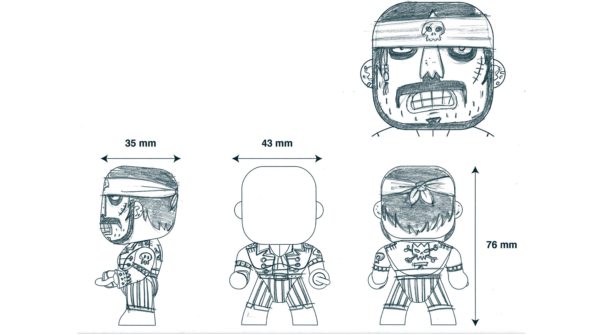 Initial pencil drawings - new head design, premoulded body shape