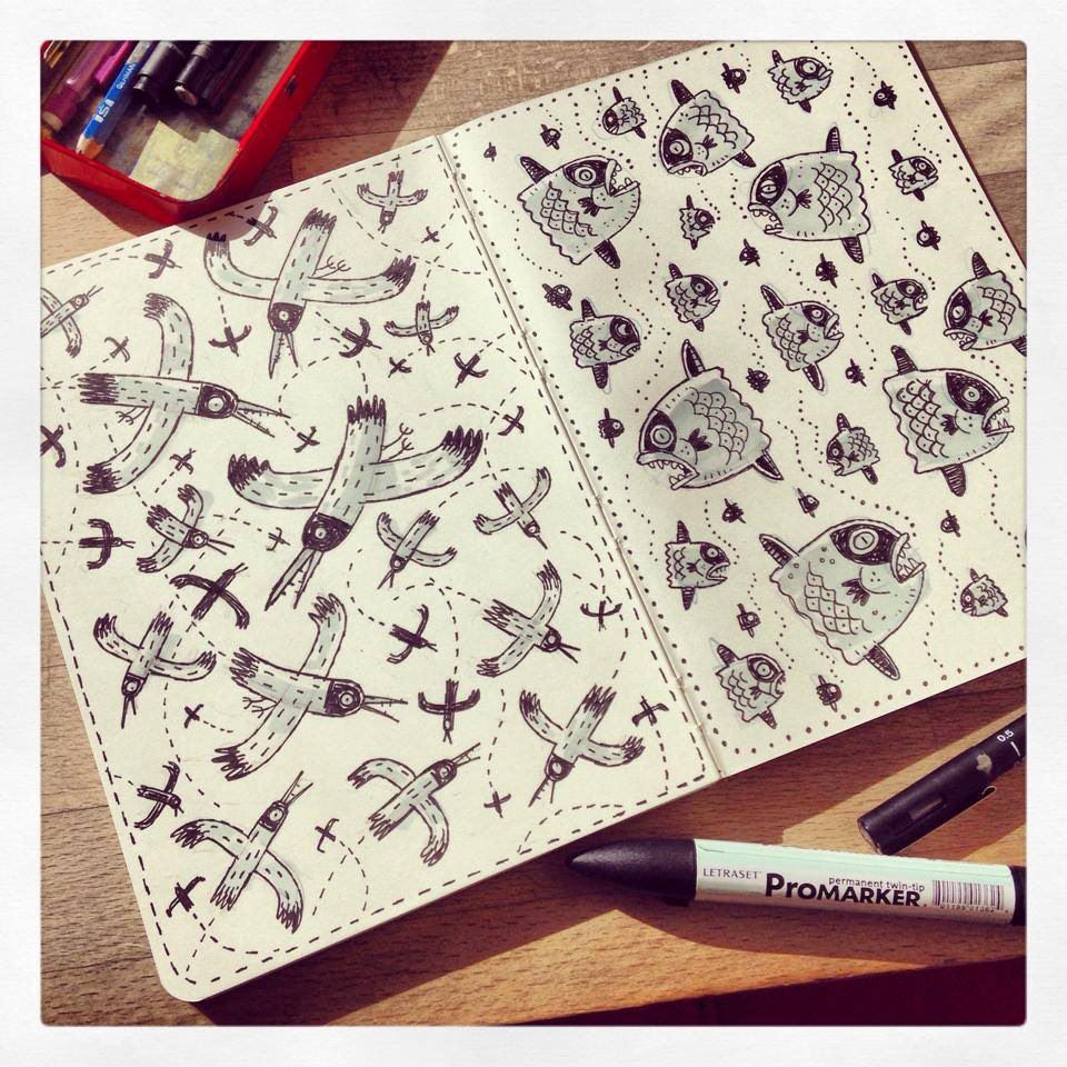 At the start of the year I discoved FLEXBOOKs, which I instantly fell in love with. The ones I'm using have less than 100 pages of heavy paper which I really like, they also lie flat so working right across a spread is a big plus:). This a small selection of sketches created for both personal and commercial jobs over the last 12 months using pencil, Unipin fibre tips, Letraset ProMarkers and watercolour.