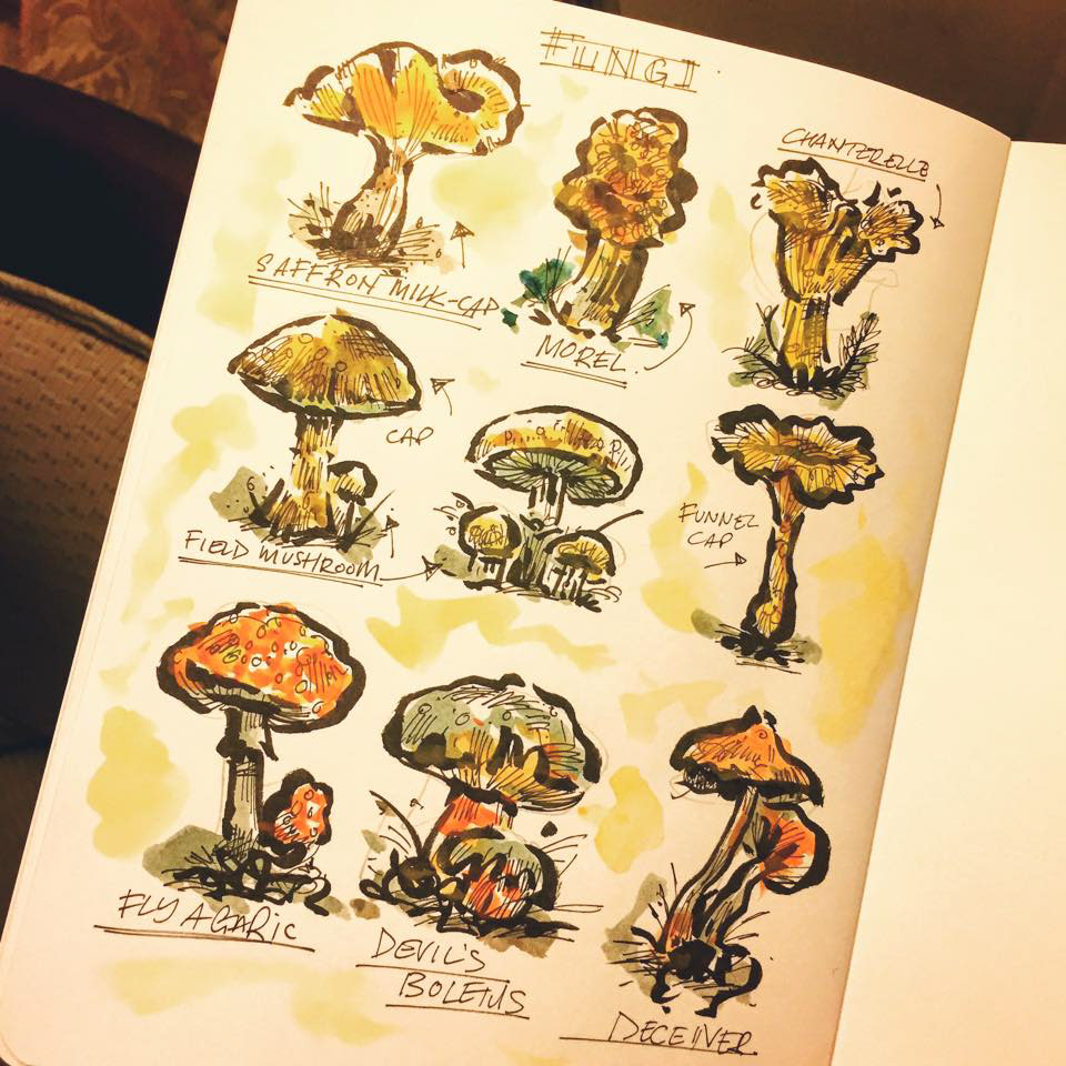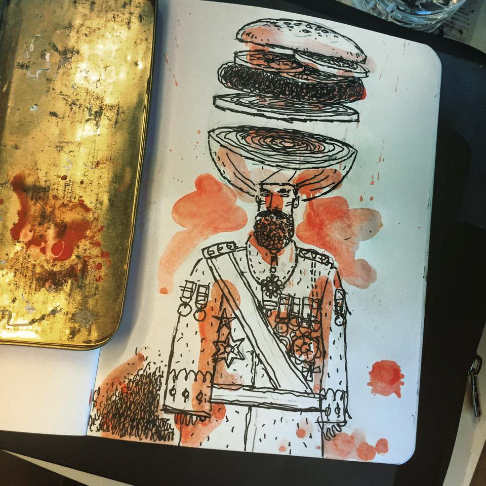 I carry a couple of sketchbooks with me everywhere I go. They are a place to experiment and record the places I travel through - sometimes just doodles ideas and other times they are more crafted and prepared illustrations - I find drawing theraputic and medative.