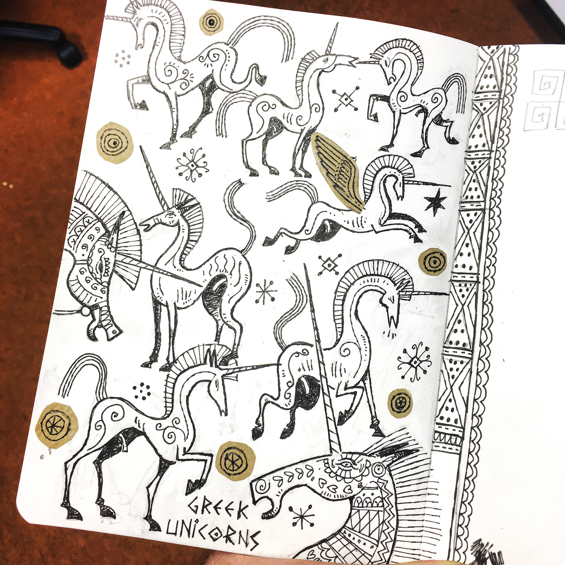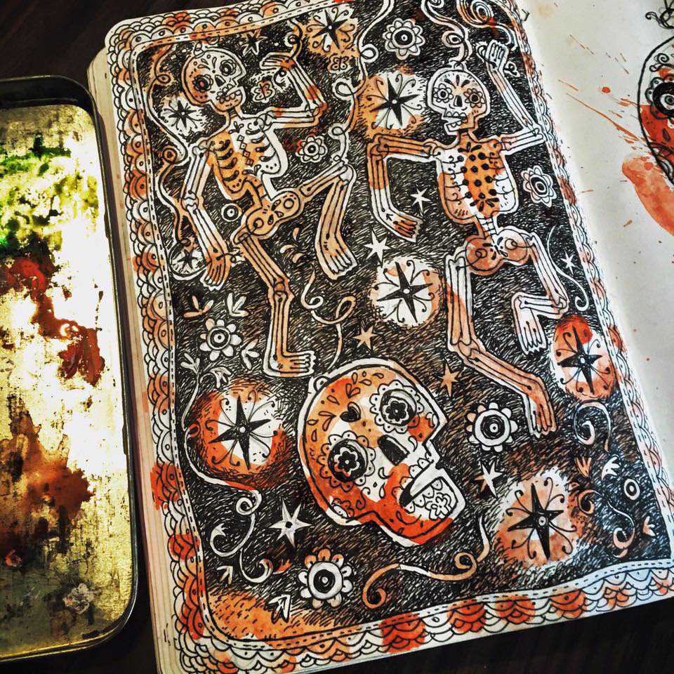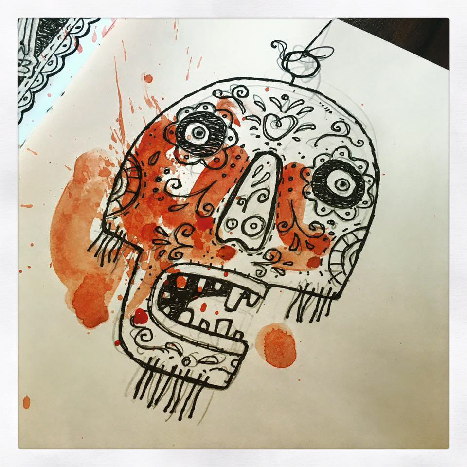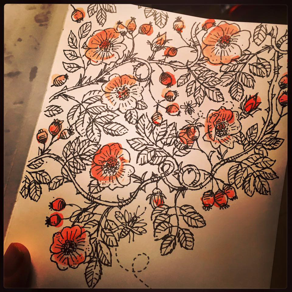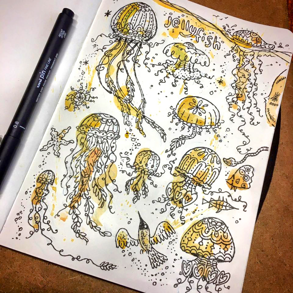 January 2016 - I See Faces - a playful sketch for my 7 yr old to count how many faces he could find - I found the most (I'm really not competitive - honest:)) - finger painting watercolour over fibre tip