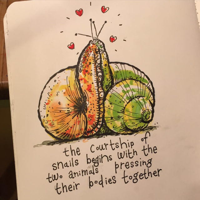 Snail Sex - I've never actually seen this - I guess they only do it with the lights off:)) - watercolour over fibretip