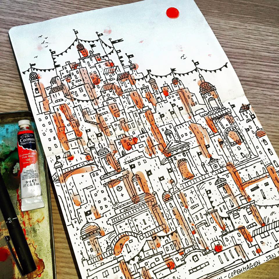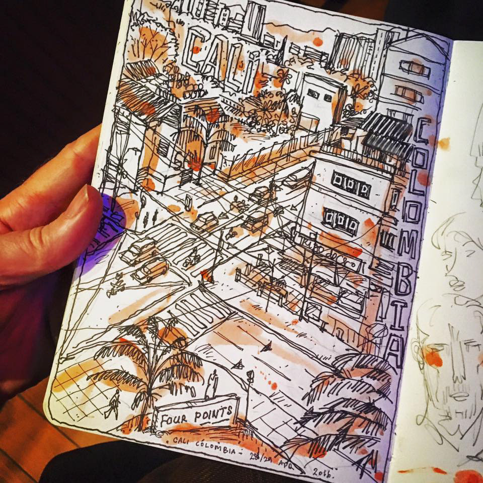 28-04-2016 Quick sketch of the view from my hotel in Cali, Colombia