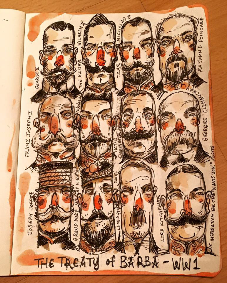 18th February 2016 - 'The Treaty of Barba - WW1' - A recent faciation with facial hair amongst the leaders of the Great War - watercolour over fibre tip