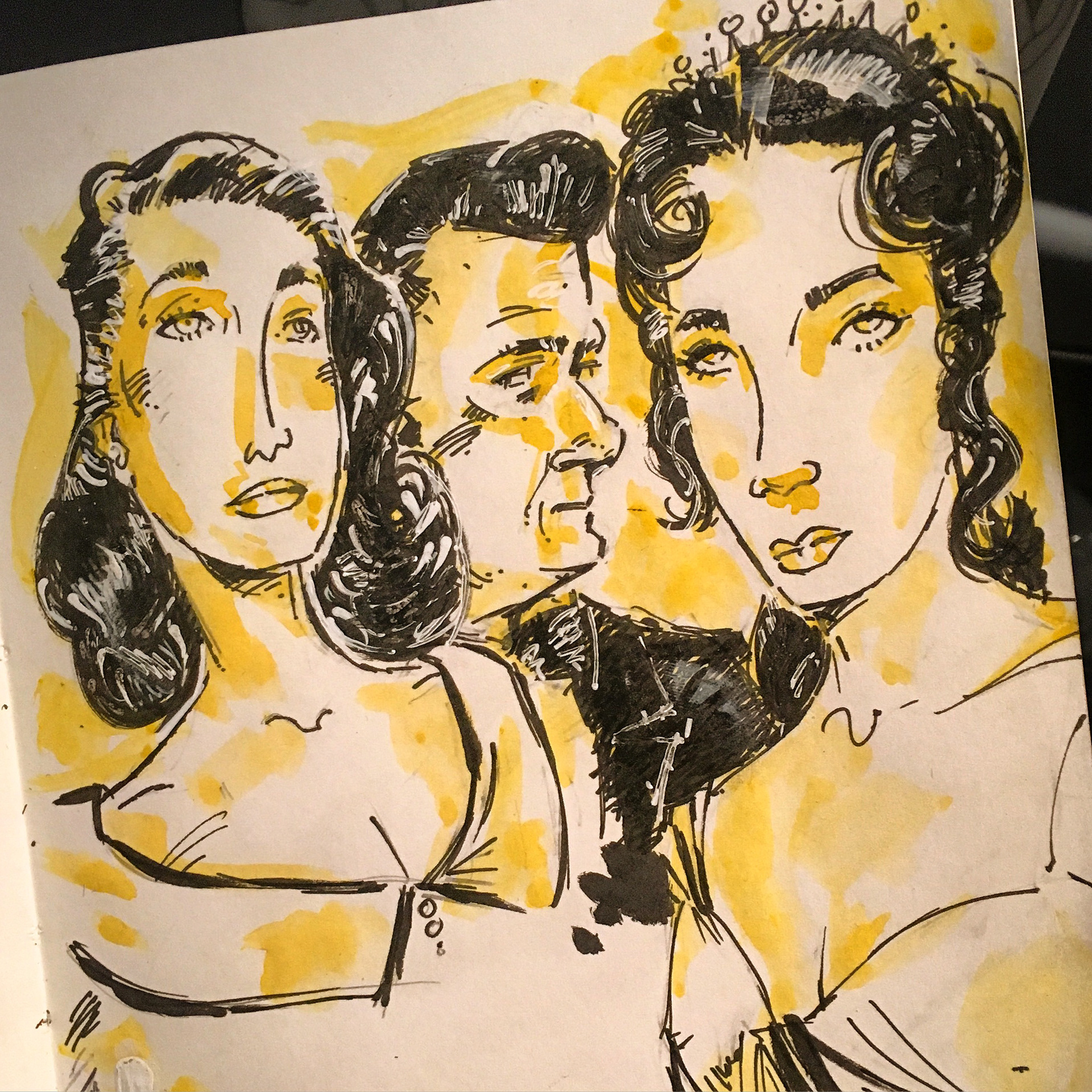 03 February 2016 - Ingrid Bergman, Mike Todd and Liz Taylor - brush pen, white pen and watercolour fingerpainting
