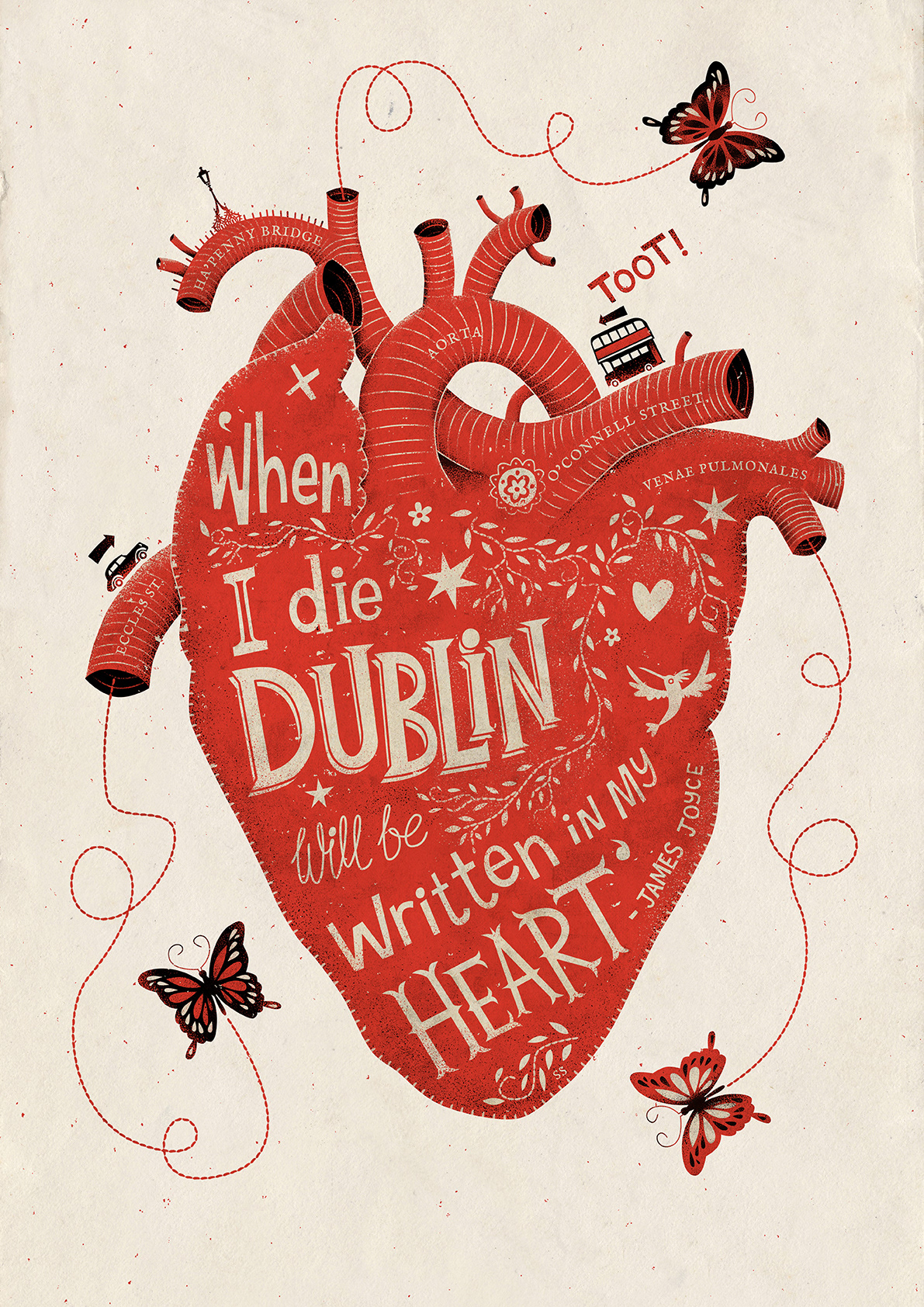Illustration for 'Damn Fine Dublin' 2 colour screen print exhibition